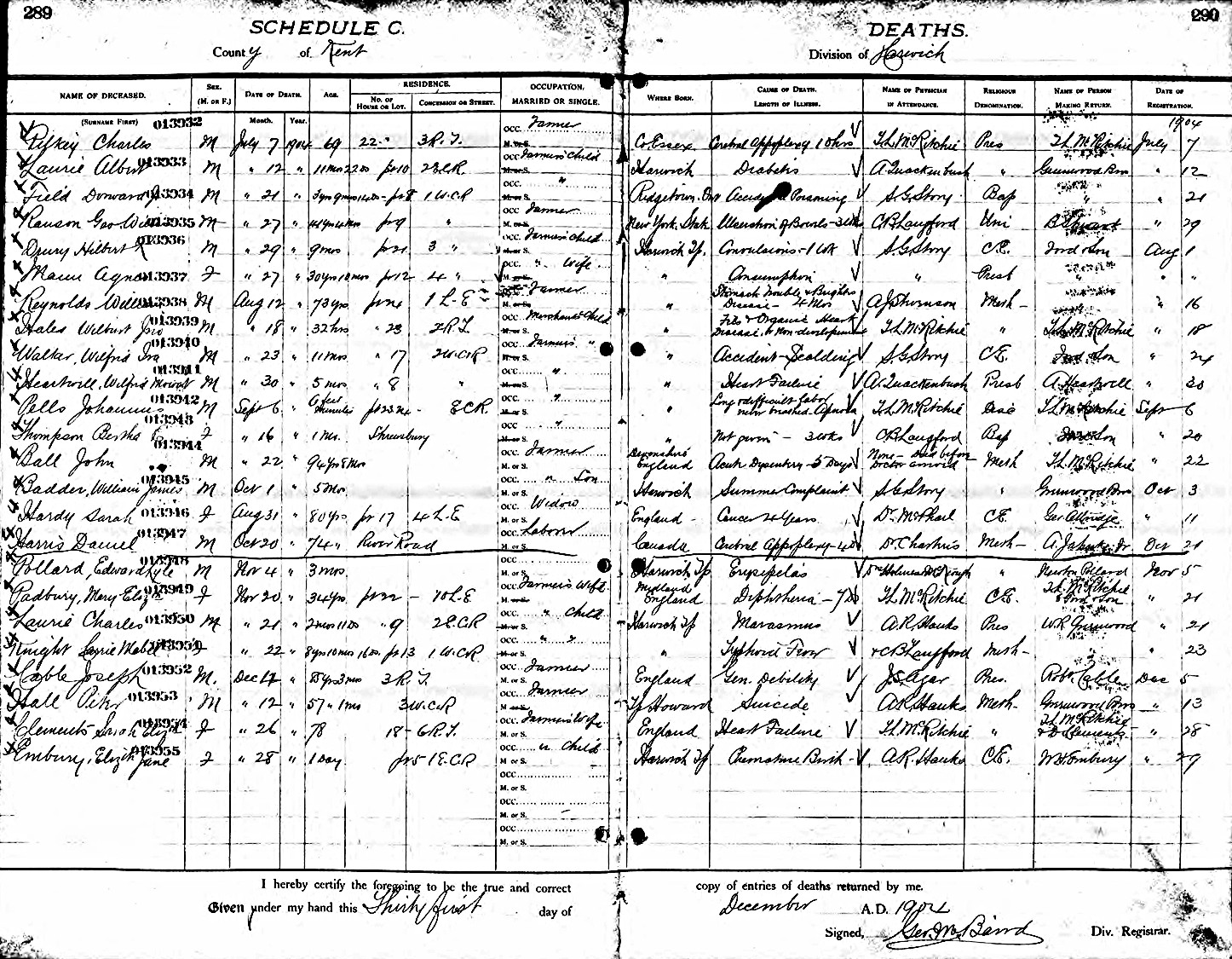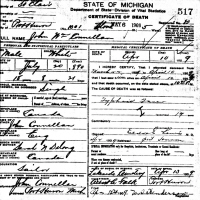 - John William Connellan: Born July 20, 1890, in Harwich, Kent Co., Ontario, Canada; Died April 10, 1909, in Port Huron, St. Clair Co., MI (age 18). Buried in Lakeside Cemetery, Port Huron, St. Clair Co., MI. Never married. He died from Typhoid Fever.