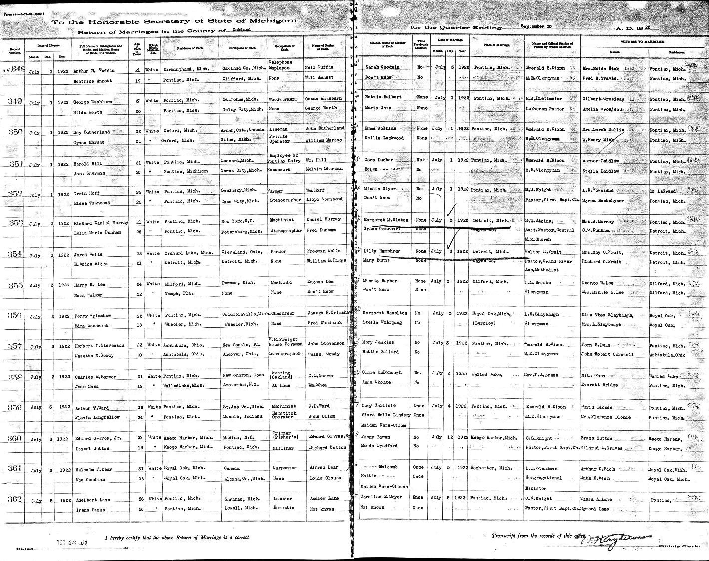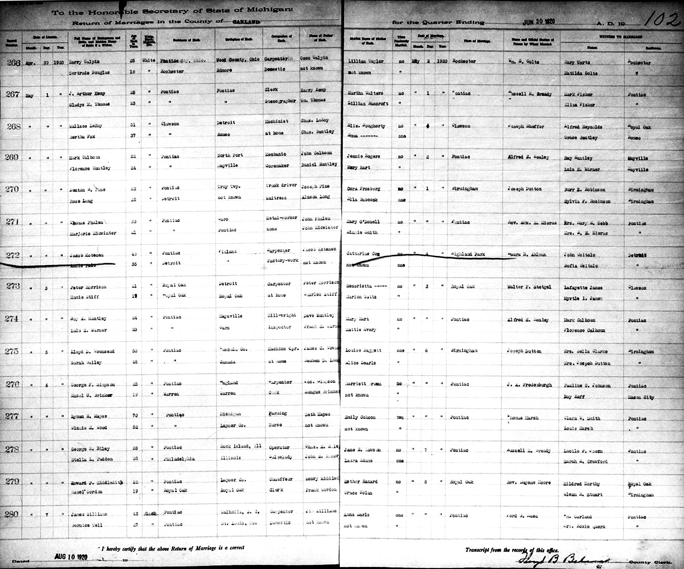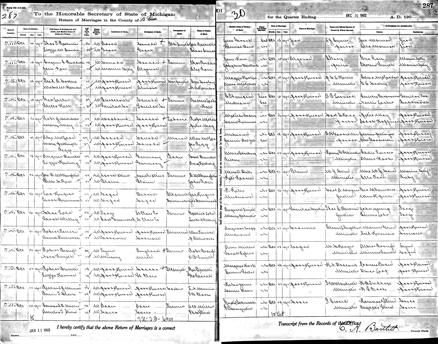 Martin A. Vanderhoof and Sarah Melissa (Delong) (Connellan) (Bailey) Townsend were married November 25, 1926, in Detroit, Wayne Co., MI.