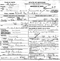 Martin A. Vanderhoof died May 30, 1951, at Olson Nursing Home, Port Huron, St. Clair Co., MI, at age 79. Buried in Lakeside Cemetery, Port Huron, St. Clair Co., MI.