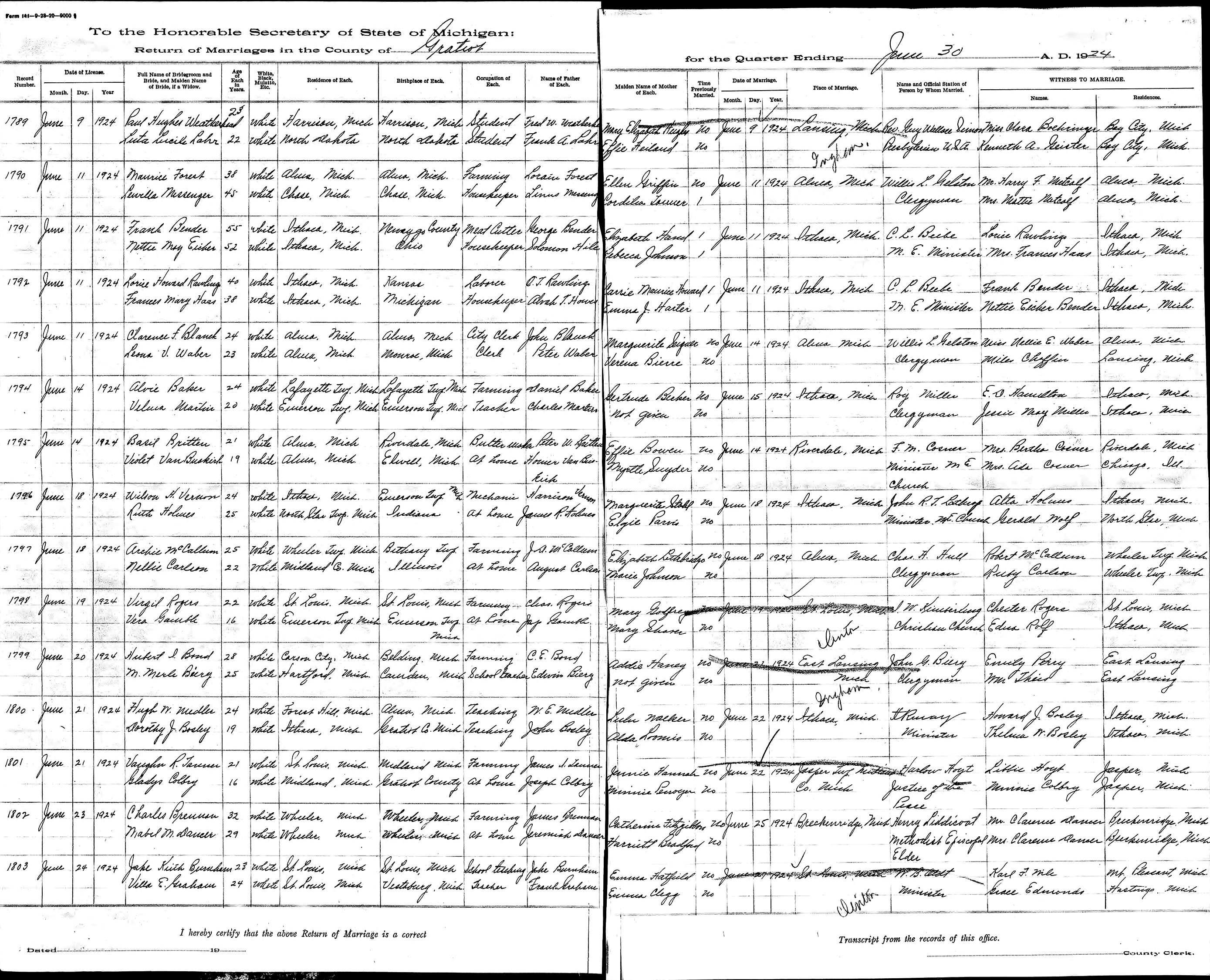 Maurice Wiley Forest and Llewella Hannah (Messenger) Vanderhoof were married June 11, 1924, in Alma, Gratiot Co., MI.