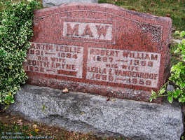 Robert William Maw and Leola Evelyn (Vanderhoof) Maw are buried in Wyoming Cemetery, Wyoming, Plympton Twp., Lambton Co., Ontario, Canada.