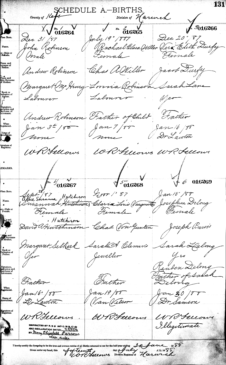 John Edward Connellan and Sarah Melissa DeLong were married November 14, 1888, in Blenheim, Kent Co., Ontario, Canada.