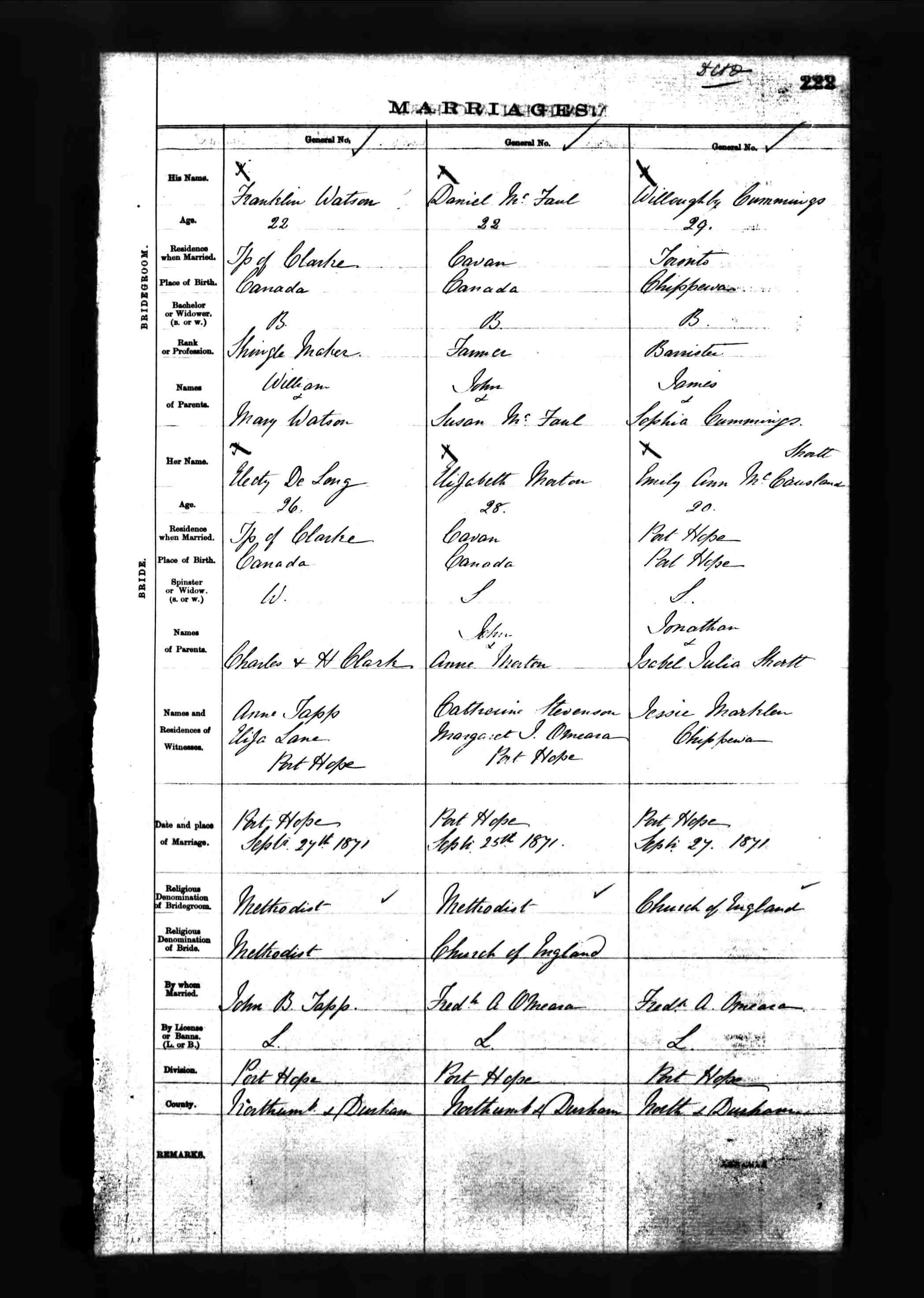 Joseph A. Purvis and Annie Elizabeth Beatrice Colbert were married March 21, 1903, in Canada, Middlesex Co., Ontario, Canada.