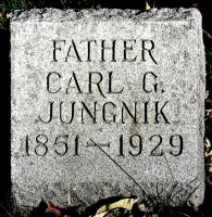 Out of this we are interested for some informations from Carl Gustav Jungnik and his immigration to US. Perhaps you have some informations for us - p.e. when he immigrated, traveled he alone or were he in attendance from other family members ? out of our own search we send you in encl. a picture of the old gravestone from "Wilhelmina Unknown". Her name was Caroline Wilhelmine Jungnik born as Richter per 29. Octbr. 1826 and she died per 27. April 1878.