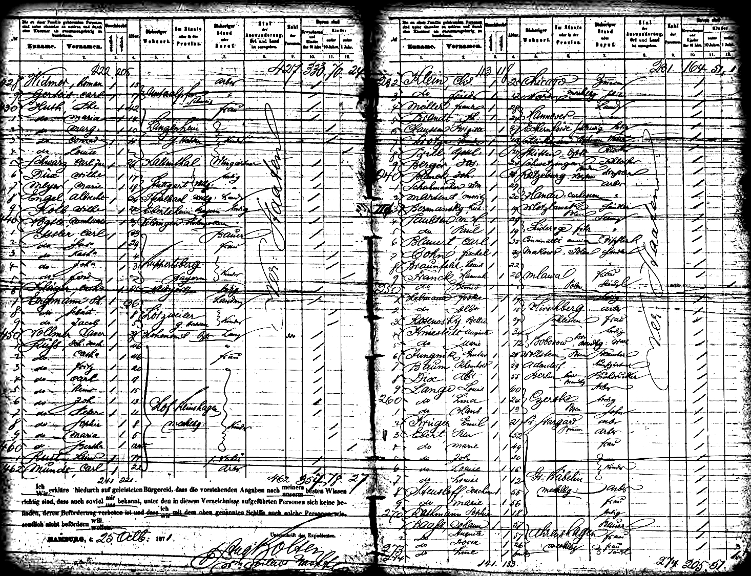 Gustav Jungnik (age 20), a Beamter, a resident of Wollstein, Posen, departed for the USA from Hamburg, Germany, aboard SS Cimbria with the destination of New York through Havre. He is traveling alone.