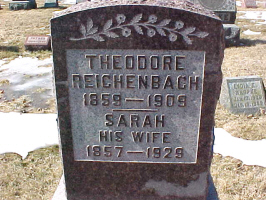 Theodore Reichenbach and Sarah "Sadie" (Kuntz) (Jungnik) Reichenbach are buried in Estabrooks Cemetery, Fond du Lac, Fond du Lac Co., WI. Many thanks to Larry and Linda Kopet for making this image available.