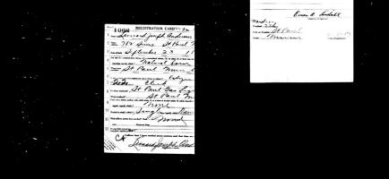 The WWI Draft Registration Report dated June 5, 1917, shows Leonard Joseph Anderson born September 23, 1890, in St. Paul, Ramsey Co., MN, is an unmarried Clerk for St. Paul Gas Light and is living at 782 Sims, St. Paul, Ramsey Co., MN.