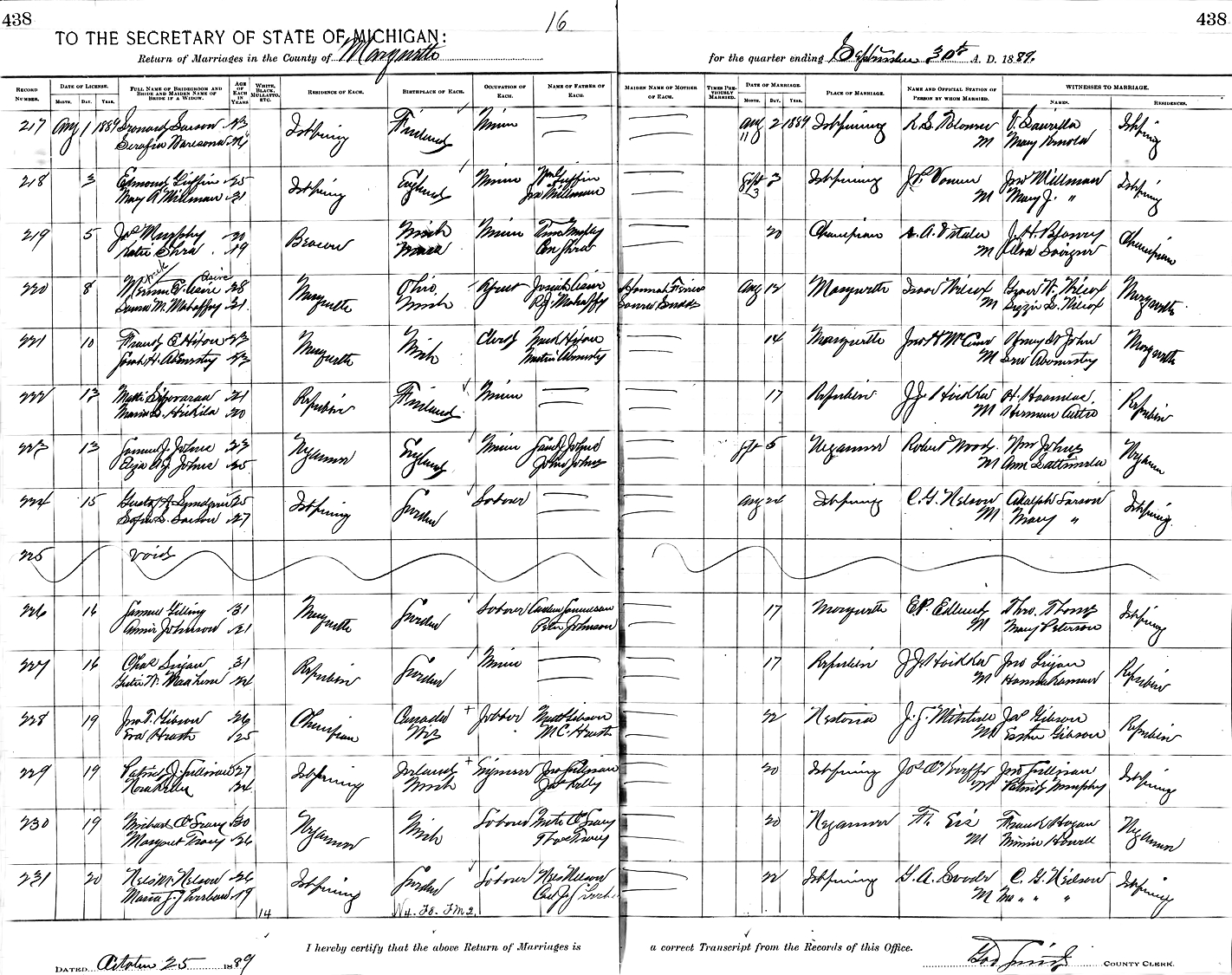 Gustaf Adolf Lundgren and Sophia Louisa "Sophie" Larson were married August 24, 1889, in Ishpeming, Marquette Co., MI .
