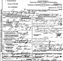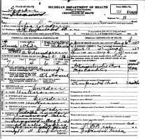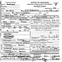 - Harry Gustave Lundgren: Born May 31, 1893, in Ironwood, Gogebic Co., MI; Died March 24, 1919, at University of Michigan Hospital, Ann Arbor, Washentaw Co., MI (age 25). Never married. He died from Bronchial Pneumonia.