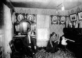 Joseph Emanuel Freeberg, Florence G. (Orman) Freeberg, and Donald E. Freeberg, taken at the Swan Freeberg residence, 402 Center, Miles City, MT, 1920.