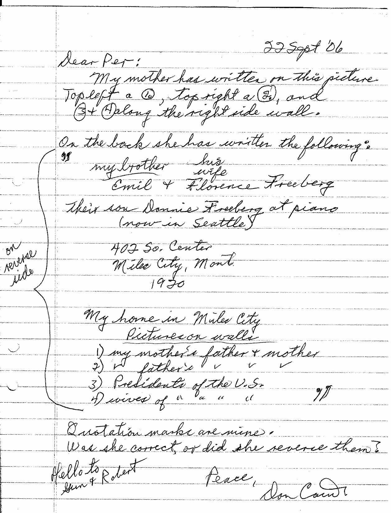 The 1923 Miles City, MT, City Directory, shows Freeberg Mrs Hilda h 402 S Center av