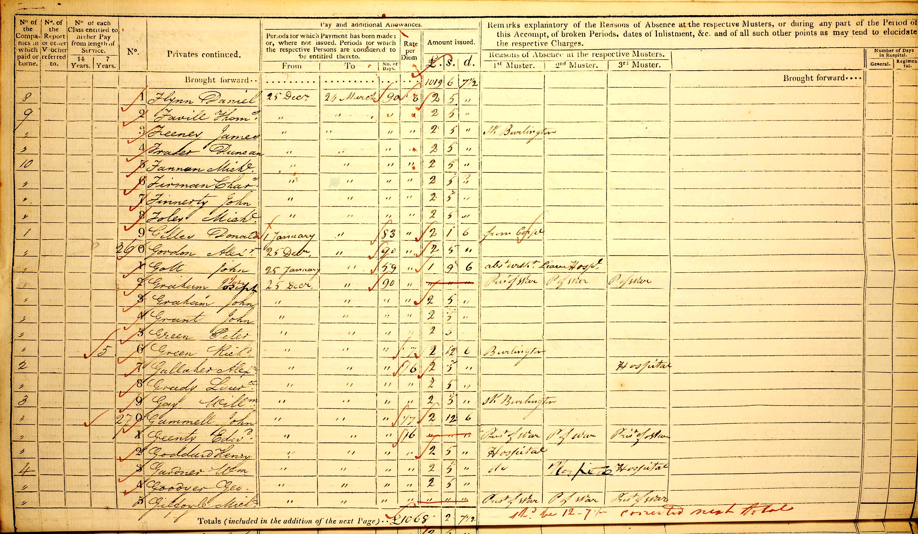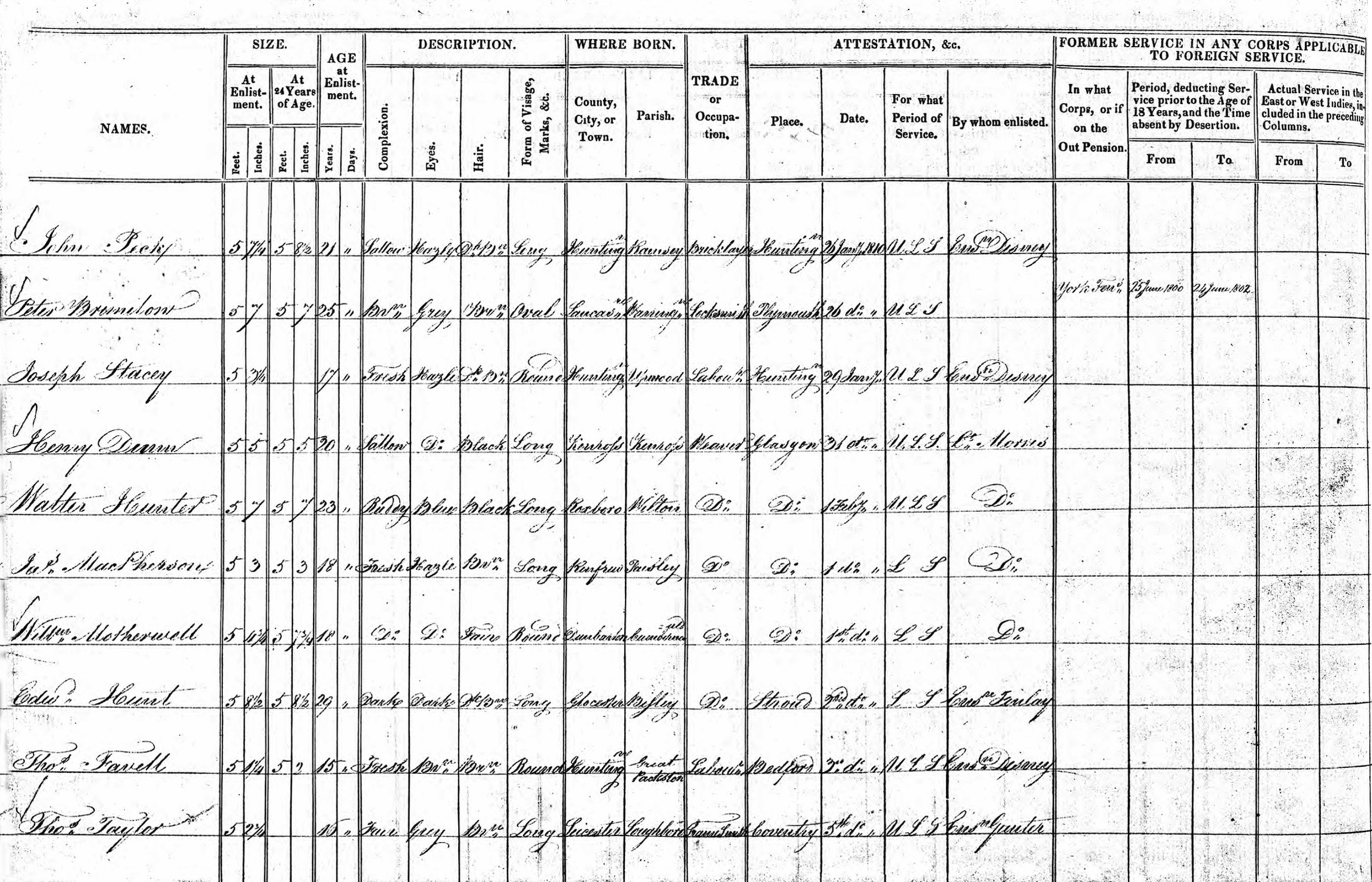 His Majesty's 103rd Regiment of Foot . Start of Muster: December 25, 1814. End of Muster: March 24, 1815. Total service time: 90 Days. This record is from ancestry.com.