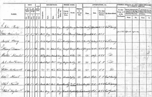 The 1860 U. S. Census taken on July 21, 1860, shows James Armstrong (age 19) born in Canada is a Boatman and is living in Granby, Oswego Co., NY, with Post Office at Fulton. Living with him are: Mary Armstrong (age 65) born in Upper Canada, a Domestic; and Rosanna Armstrong (age 9) born in New York. Living next door is the Thomas Favil family.