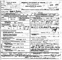 - Sicelia Feavel : Born March 1, 1831, in Oswego, Oswego Co., NY; Died February 23, 1913, in Grand Rapids, Wood Co., WI (age 81). Buried in Forest Hill Cemetery, Wisconsin Rapids, Wood Co., WI. Married (1) about 1848, in Unknown, to David Mallory Page: Born September 22, 1830, in Canada; Died February 26, 1909, in Washington (age 78). Buried in Evergreen Cemetery, Everett, Snohomish Co., WA. Divorced about 1851, in New York. Married (2) February 7, 1850, in Adams, Jefferson Co., NY, to Israel Henry Jero: Born November 7, 1812, in Quebec, Canada; Died July 28, 1876, in a lumber accident in Ellington, Outagamie Co., WI (age 83). Sicelia (Feavel) Jero then Married (3) November 12, 1883, in Clintonville, Waupaca Co., WI, to Lester L. Frisbee: Born 1859, in Yates Co., NY; Died after 1883, in Unknown. Sicelia (Feavel) (Jero) Frisbee then Married (4) February 7, 1891, in Wood Co., WI, to William D. Morey: Born April 18, 1847, in Cornwall, Orange Co., NY; Died February 2, 1926, in Norway, Dickinson Co., MI (age 78). Divorced before 1901. William Henry Page : Born March 13, 1849, in Oswego, Oswego Co., NY; Died February 13, 1914, in Ludington, Mason Co., MI (age 64). Buried in Lakeview Cemetery, Ludington, Mason Co., MI. Married Unknown, in Unknown, to Eleanor Armstrong: Born May 27, 1828, in Yonge, Leeds, Greville, Upper Canada; Died July 27, 1864, in Granby, Oswego Co., NY (age 36). William Henry Page/Jero was adopted by Thomas Feavel and Margaret (Lane) Armstrong and given the last name of Feavel.