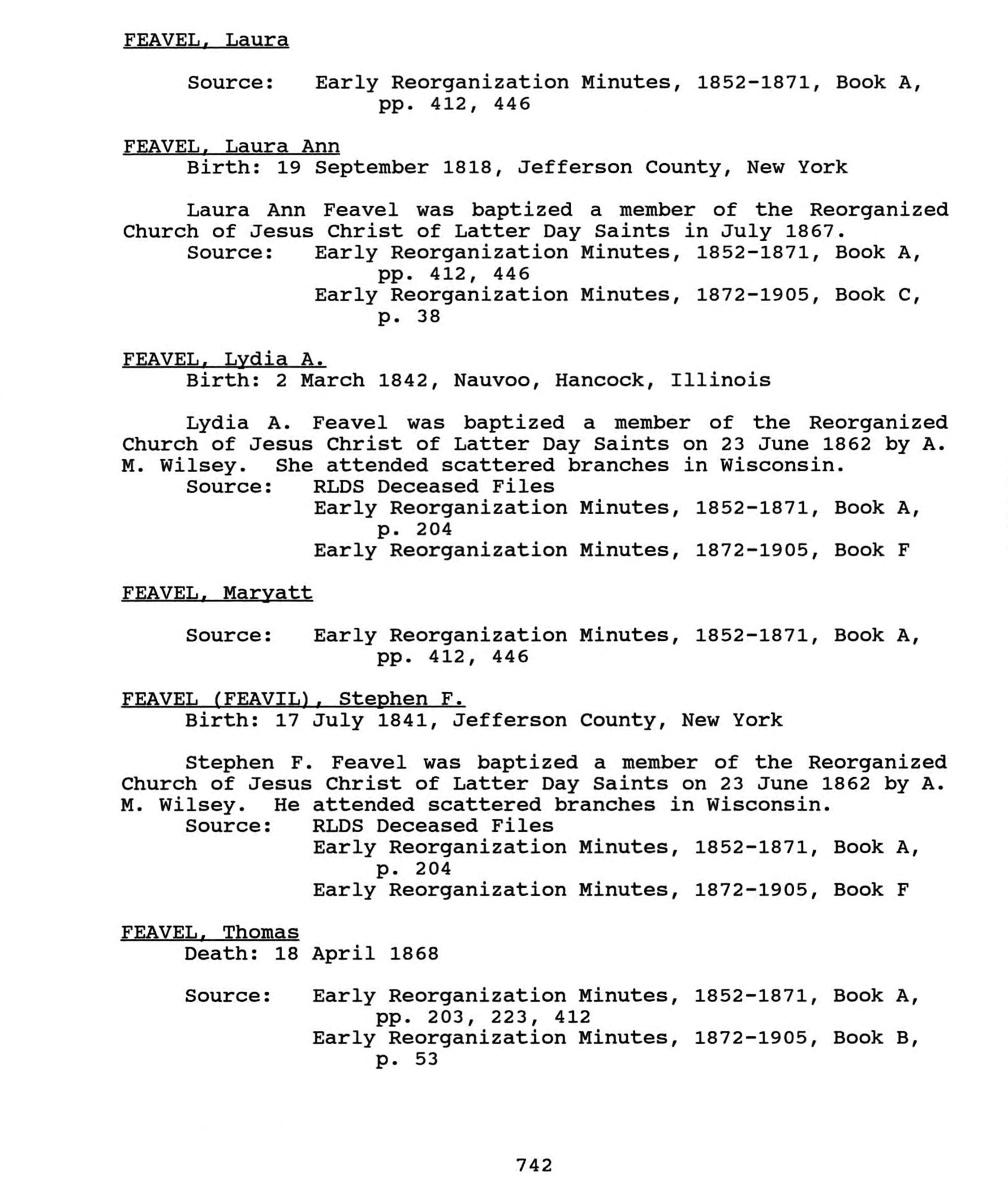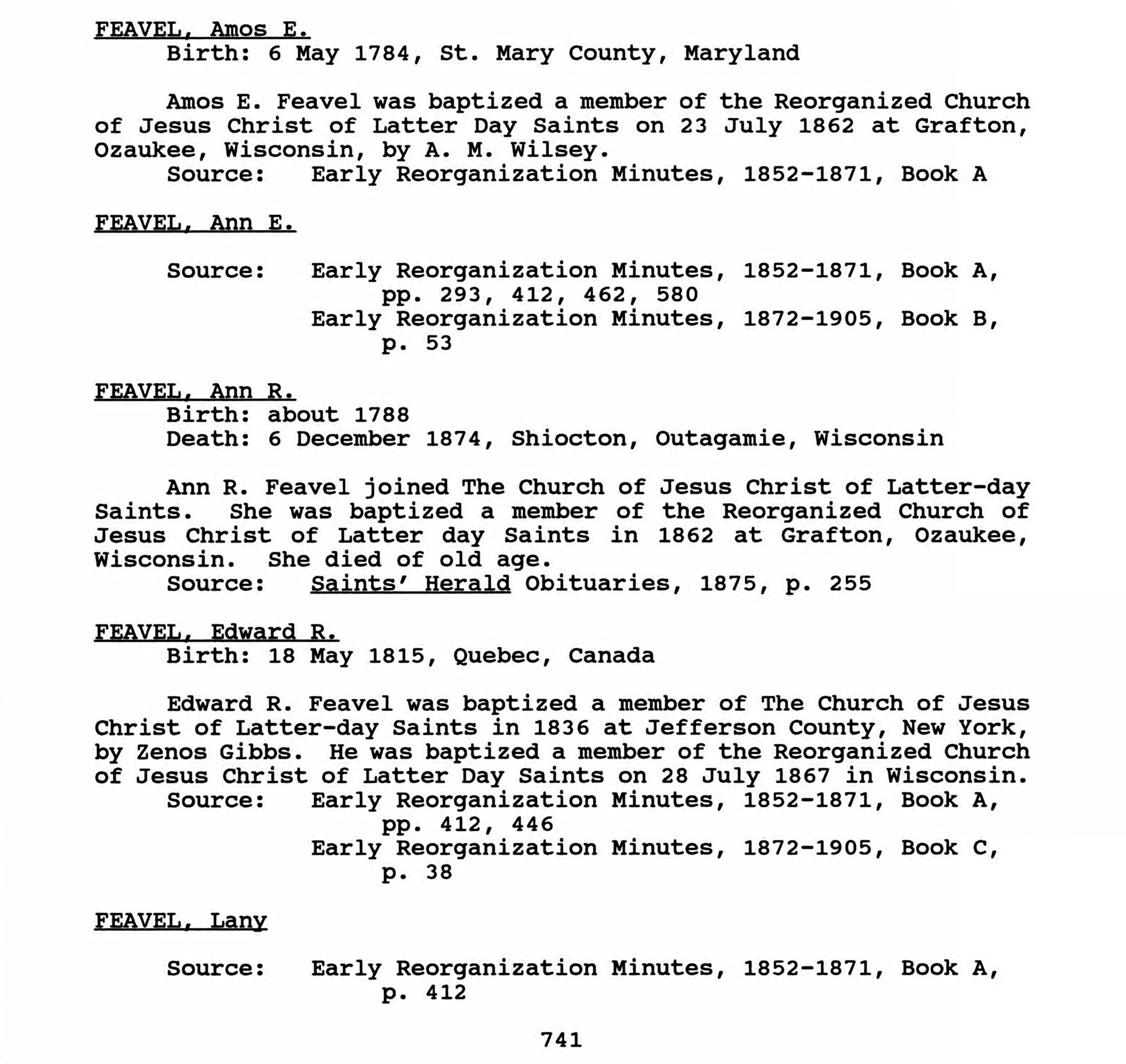 Some LDS Feavel Family Sources, by Susan Easton Black.