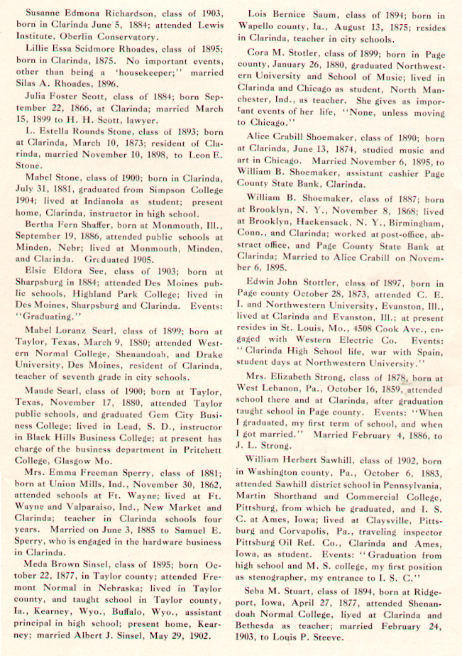 A graduate of the Clarinda high school, she attended Iowa university and was