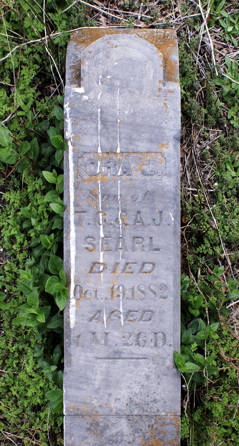 - Ora J. Searl: Born August 23, 1882, in Texas; Died October 19, 1882, in Texas (age 1 Month, 26 Days). Buried in Gregg Cemetery, Travis Co., TX.