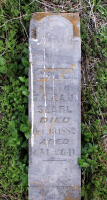Ora J. Searl died October 19, 1882, in Texas at age 1 Month, 26 Days. Buried in Gregg Cemetery, Travis Co., TX.