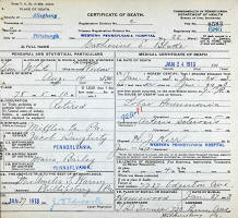 William McClelland Taylor died March 6, 1909, at St. Francis Hospital, 9th Ward, Pittsburgh, Allegheny Co., PA, at age 44. Buried in Homewood Cemetery, Pittsburgh, Allegheny Co., PA.