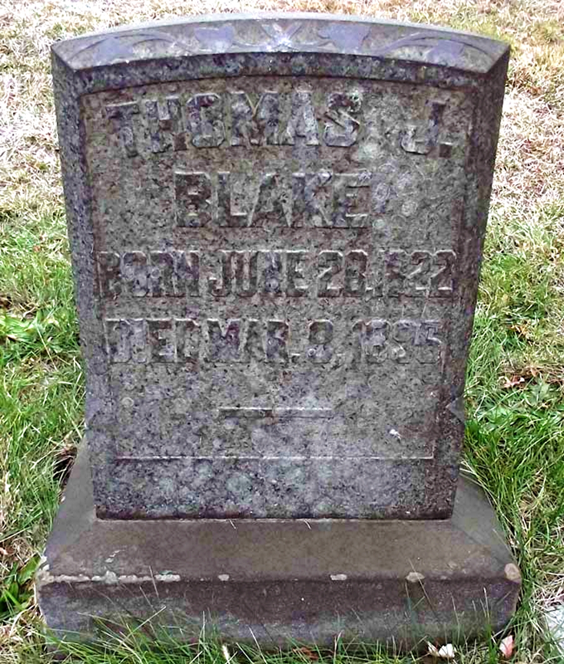 Thomas Jefferson "T. J." Blake Sr. died March 9, 1896, in Pittsburgh, Allegheny Co., PA, at age 73. Buried in Homewood Cemetery, Pittsburgh, Allegheny Co., PA.