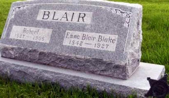 A. Robert Blair and Emma Elizabeth (Mingus) (Blair) Blake are buried in Fontanelle Cemetery, Fontanelle, Adair Co., IA. Thanks to Find-A-Grave for making this image available.