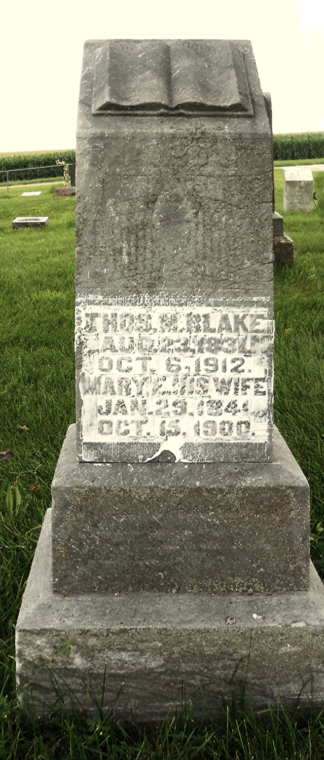 Thomas Monroe "Tom" Blake and Mary Ella (Barkman) Blake are buried in Yale Cemetery, Cass Twp., Guthrie Co., IA. Thanks to Find-A-Grave for making this image available.