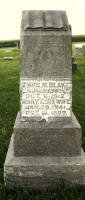 Mary Ella (Barkman) Blake died October 15, 1900, in Yale, Cass Twp., Guthrie Co., IA, at age 59. Buried in Lot 18, Yale Cemetery, Cass Twp., Guthrie Co., IA.