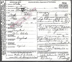- Vernon Frederick Blake: Born October 17, 1867, in Warren, Jo Daviess Co., IL; Died May 5, 1930, at 1003 South 22nd Street, 4th Ward, City of Omaha, Douglas Co., NE (age 62). Buried in Omaha West Lawn Cemetery, Omaha, Douglas Co., NE. Married (1) September 13, 1894, in Cherokee, IA, to Ula Mae Lee: Born March, 1876, in Ohio; Died Unknown. Divorced. Married (2) December 26, 1906, in Council Bluffs, Pottawattamie Co., IA, to Mary Jane "Mamie" (McChesney) (Sturm) Gitt: Born about 1869 in Iowa; Died after January 18, 1951, probably in Lincoln, NE (about age 82). Divorced about 1912 in Omaha, NE.