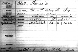 Thomas M. Blake, a resident of Blair Co., PA, enlisted October 24, 1861, in Huntingdon Co., PA, for a period of nine months. Private, Company F, 125th Regiment, Pennsylvania Infantry.