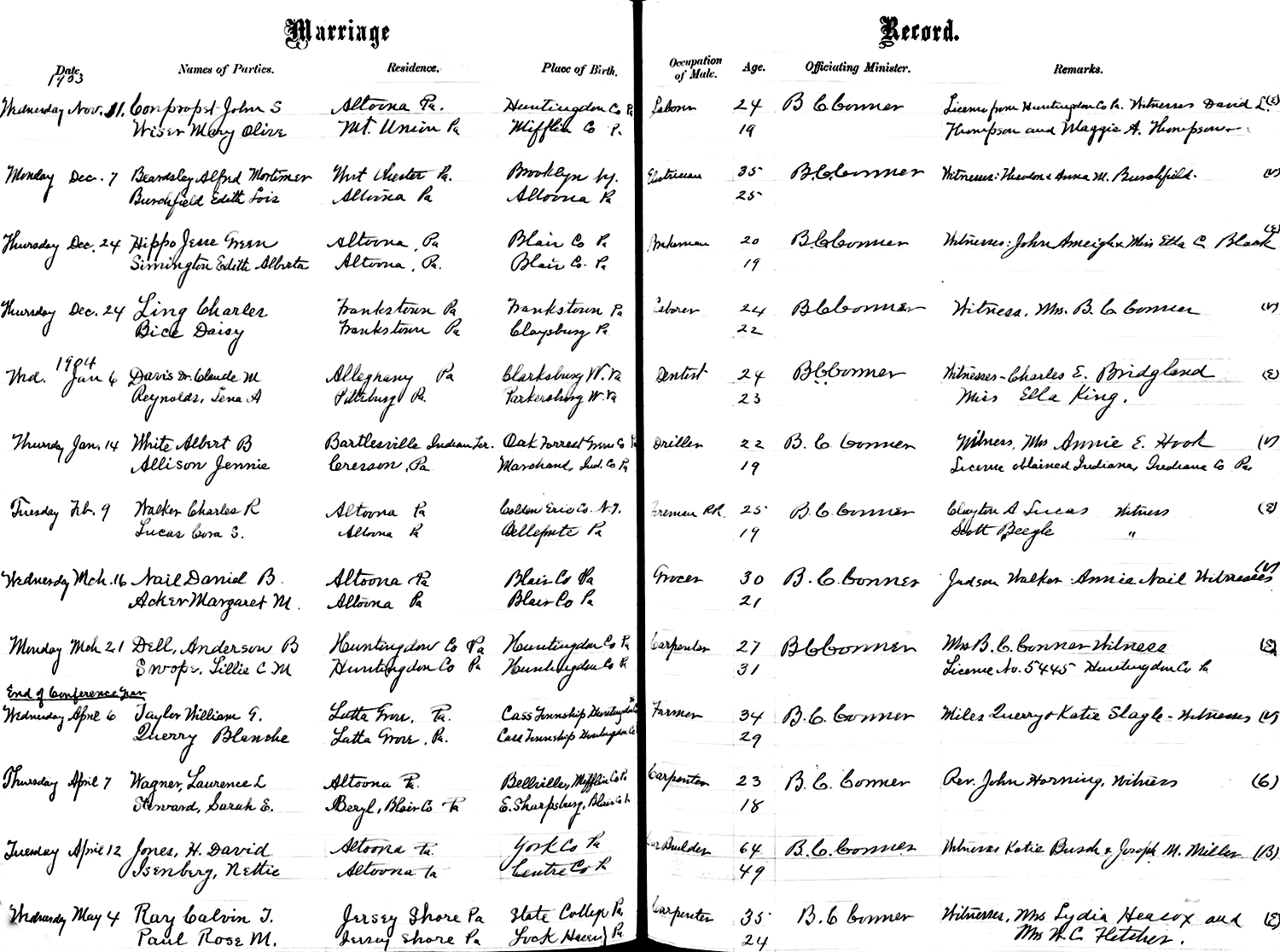 MARRIAGE RECORD.