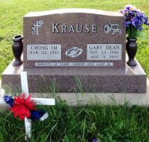 - Gary Dean Krause: Born November 24, 1946, in Bellevue, Jackson Co., IA; Died August 9, 2011, at Mercy Medical Center North Campus, Clinton, Jackson Co., IA (age 64). Buried in Reeseville Cemetery, Green Island, Washington Twp., Jackson Co., IA. Married June 1, 1970, in Seoul, Korea, to Chong I. Yi: Born March 22, 1941, in Korea.