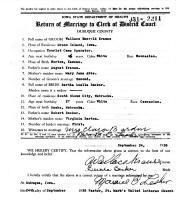 The 1930 U. S. Census taken on April 7, 1930, shows Robert C. Becker (age 42) born in Wisconsin to Wisconsin-born parents and first married at age 23 is a Proprietor of an Undertaking Parlor who is renting his home for $15/month and is living at 223 East Farnham Street, 2nd Ward, South Sioux City, Covington Pct., Dakota Co., NE. Living with him is his wife, Virginia Becker (age 43) born in New York to New York-born parents and first married at age 24, who does Office Work at an Undertaking Parlor. Also living there are his eight unmarried children, all born to Wisconsin and New York-born parents: Bertha L. Becker (age 18) born in Nebraska; Robert L. Becker (age 17) born in Nebraska; Helen L. Becker (age 14) born in Nebraska; Donald E. Becker (age 13) born in Nebraska; Marjorie E. Becker (age 11) born in Nebraska; John M. Becker (age 9) born in Iowa; Jack Becker (age 8) born in Iowa; and Herbert B. Becker (age 7) born in Nebraska.