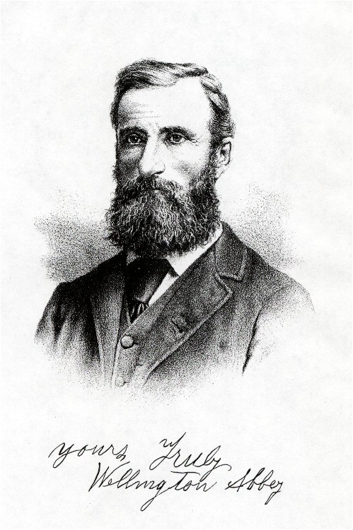 Wellington Abbey was born April 22, 1840, in Clarke Twp., Newcastle Dist., Durham Co., Upper Canada. He was raised as a Baptist.