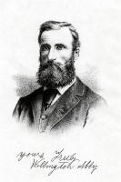 Wellington Abbey, son of Nathaniel and Mary (Nugent) Abbey, born in Port Hope, Ontario, Canada, April 22. 1840; died in Fond du Lac, WI, September 23, 1901. As his father died when he was but a child, he was early thrown upon his own resources and from the time he was fifteen he was dependent upon his own efforts. While his early education was limited, he became a well-informed man due to his retentive memory and his constant habits of study. In his home were always found the leading papers and periodicals and a well-equipped library. With the family, he came from Canada to Sheboygan, WI, in 1849. In 1851, his mother with the other children returned to Canada and Wellington removed to Fond du Lac Co., where he afterward resided with the exception of two years, 1859 to 1861, which he spent with his mother in Canada.