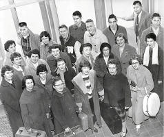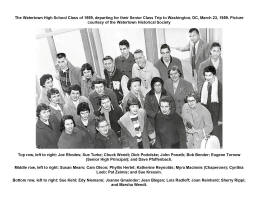 The Watertown High School Class of 1959, departing for their Senior Class Trip to Washington, DC, March 23, 1959. Picture courtesy of the Watertown Historical Society