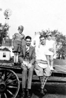 James Copeland Jr., Wilbur Larson, James Copeland Sr., and Jean Copeland, Larson farm, Town of Farmington, Waupaca Co., WI , August, 1930.