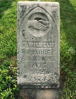 - Johann Friedrich Wilhelm Krause Jr.: Born October 30, 1849, in Schwabach, Prussia, Germany ; Died April 27, 1916, in Grand Meadow Twp., Mower Co., MN (age 66). Buried in Grand Meadow Cemetery, Grand Meadow, Mower Co., MN. Married January 12, 1873, in Auburn Twp., Fond du Lac Co., WI, to Amelia H. Wagner: Born August 26, 1854, on ship on the Atlantic Ocean; Died January 31, 1928, in Mower, MN (age 73). Buried in Grand Meadow Cemetery, Grand Meadow, Mower Co., MN.