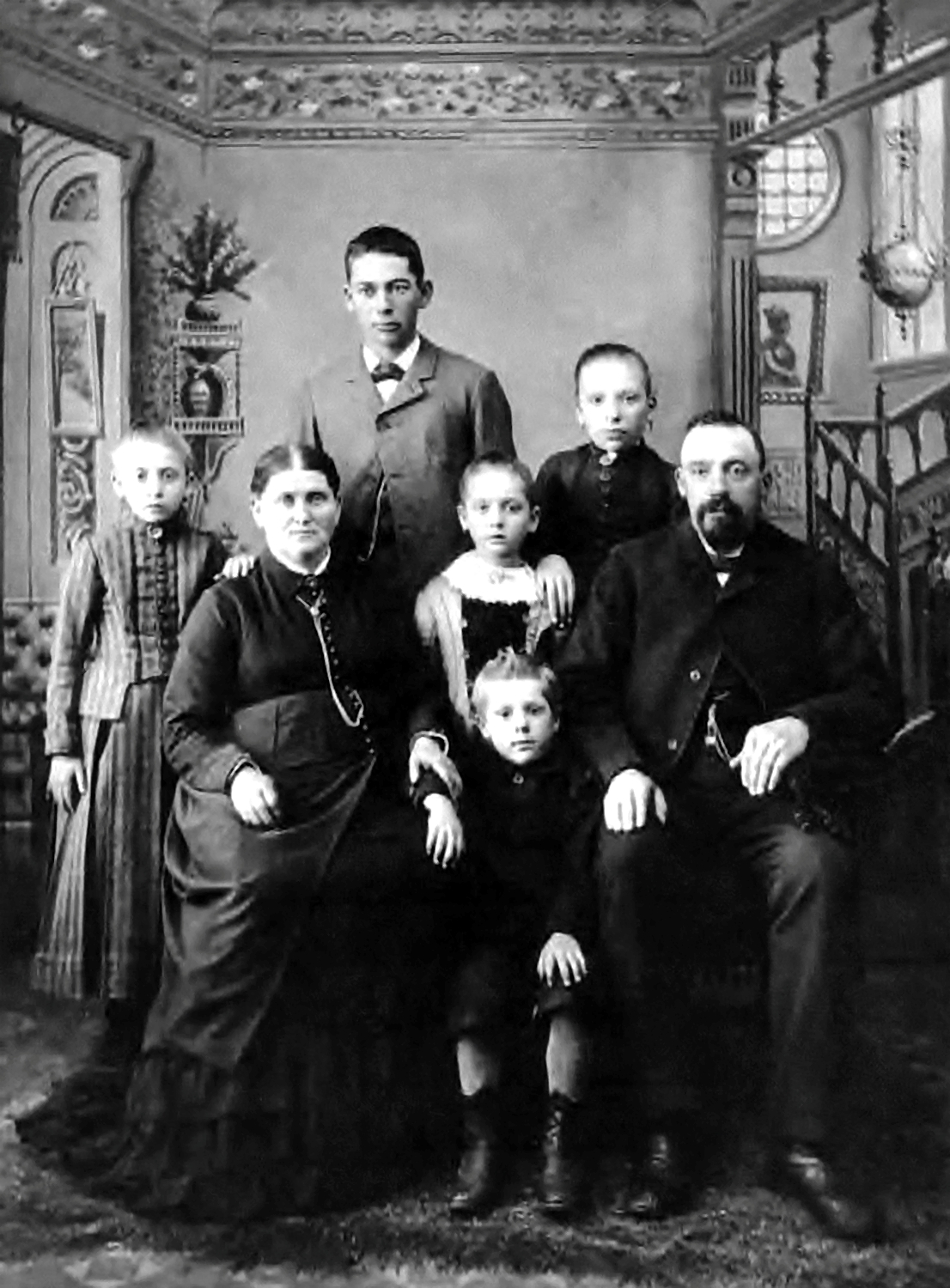 Philip and Caralina (Raetsch) Heinrichs Family. Emma Dora Marie Heinrichs is the girl on the left side of the picture. Emma was born in Watertown, WI. Emma married William Abbey Shidell. Picture taken about 1890.