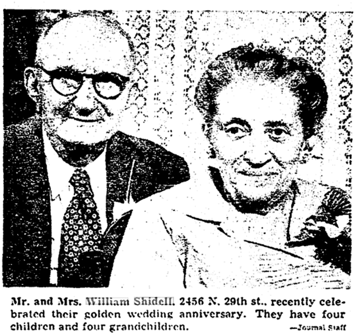 William Abbey "Will" Shidell and Emma Dora Marie (Heinrichs) Shidell celebrated their 50th wedding anniversary in May, 1952.