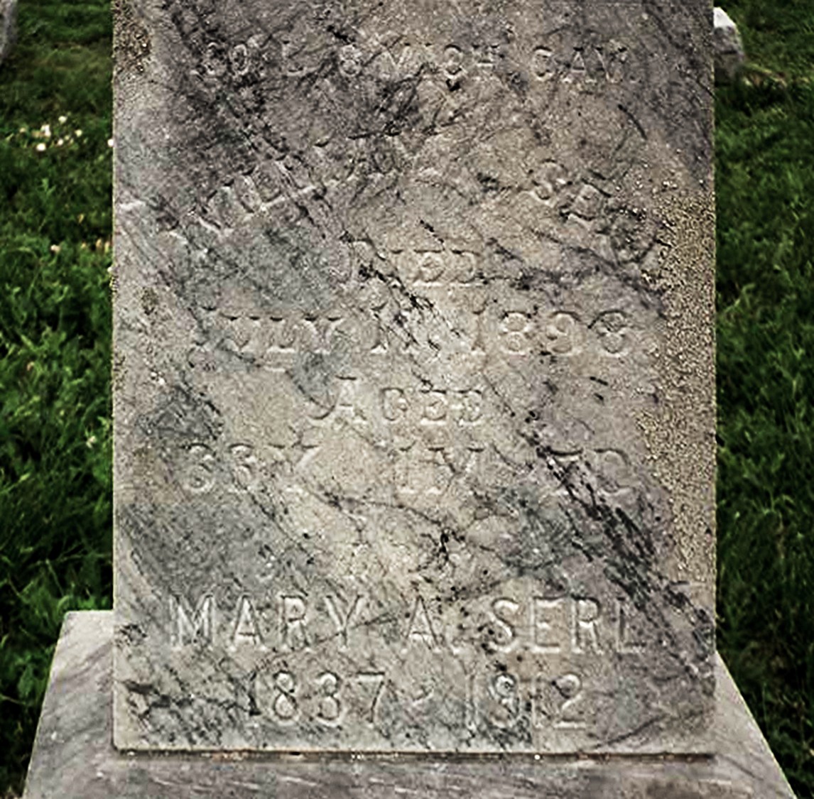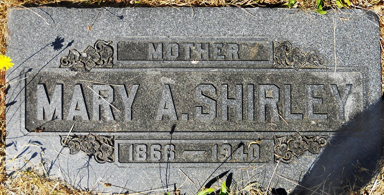 - Mary Angela Serl: Born October 9, 1866, in Michigan; Died August 10, 1940, near McCleary, Grays Harbor Co., WA. (age 73). Buried in McCleary Cemetery, McCleary, Grays Harbor Co., WA. Married November 11, 1891, in Red Cloud Twp., Webster Co., NE, to Abner Samuel Edmond Shirley: Born October, 1870, in Illinois; Died July 5, 1941, in Mount Vernon, Skagit Co., WA (about age 70). Buried in McCleary Cemetery, McCleary, Grays Harbor Co., WA. His parents are Samuel B. Shirley and Mollie M. Doolley. In 1900, Edmond and Mary are living in Lawrence Co., TN. He is a Teamster.