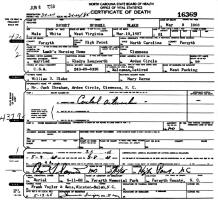 Robert Russell Blake died May 9, 1968, at Lamb's Nursing Home, Clemmons, Forsyth Co., NC, at age 81.