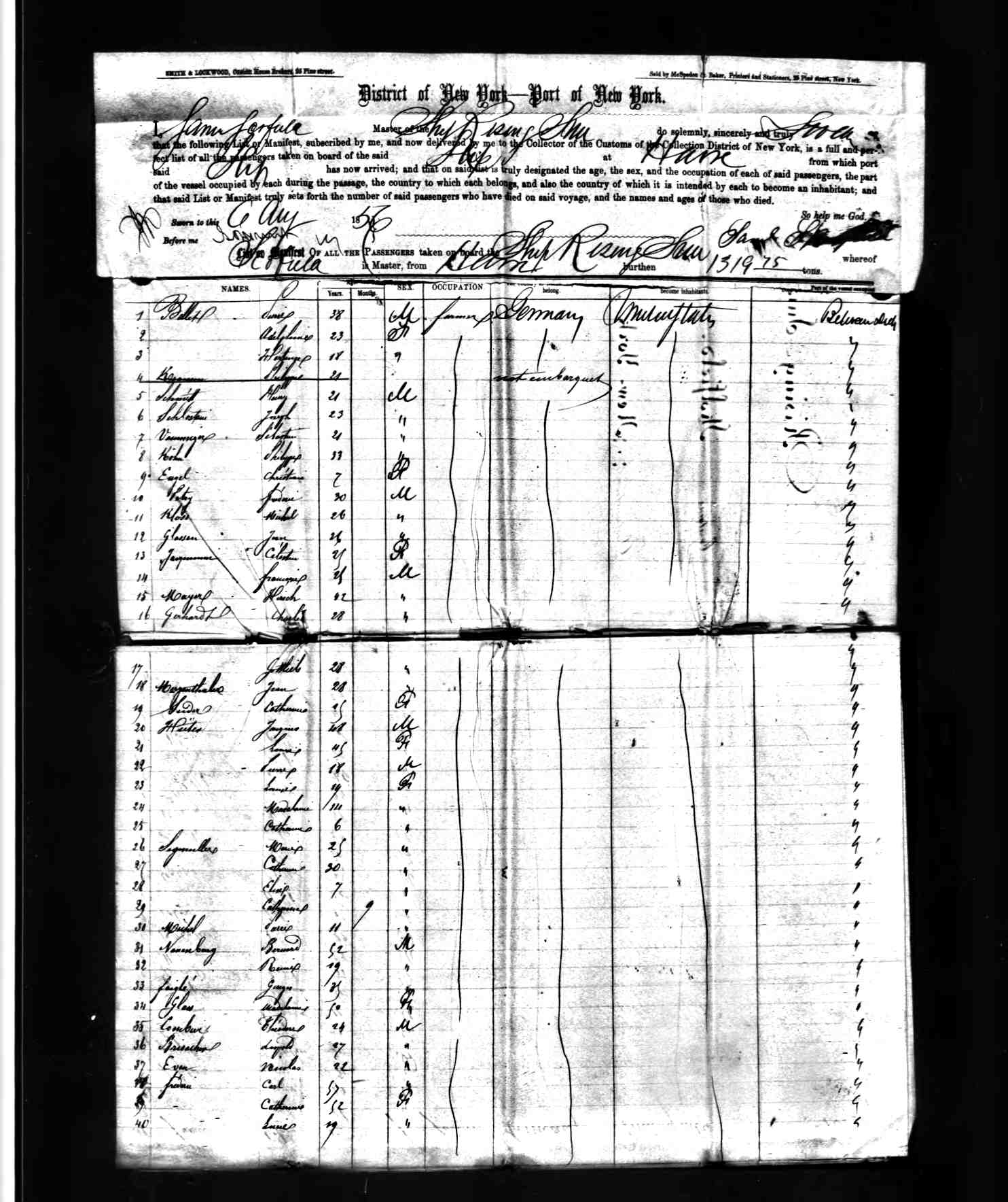 Gottlieb and Charles Gerhardt (both of German Nationality, age 28) departed first from Germany, and then from Le Havre, France, and arrived at the Port of New York on August 6, 1856, aboard the S. S. Rising Sun.