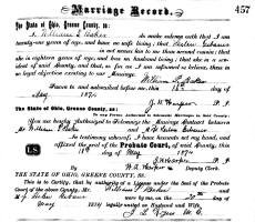 William Penn Baker and Helen Margaret "Marie" Gebauer were married May 20, 1874, at the William A. Means home, Village of Yellow Springs, Miami Twp., Greene Co., OH.