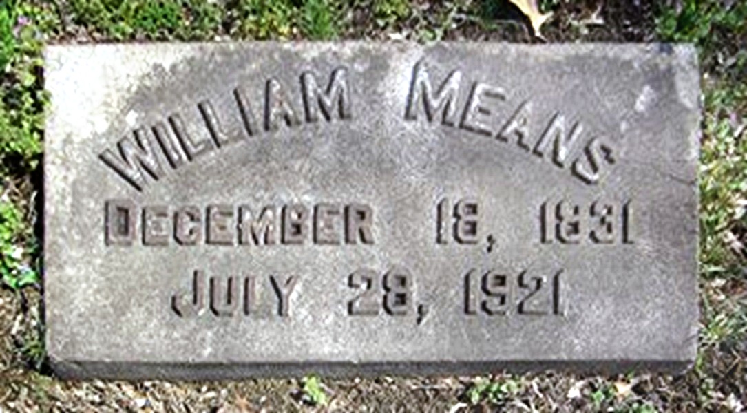William Albert Means is buried in Woodland Cemetery, Ironton, Lawrence Co., OH. Thanks to Find-A-Grave for making these images available.