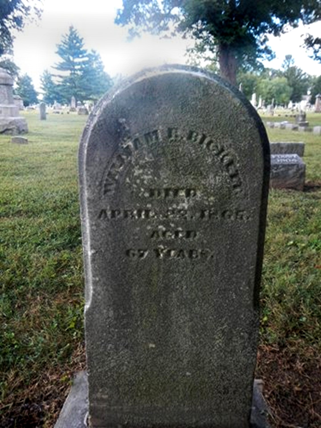 Isabella (Alexander) Bickett died April 4, 1883, in Xenia Twp., Greene Co., OH, at age 83. Buried in Woodland Cemetery, Xenia Twp., Greene Co., OH.