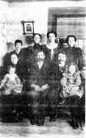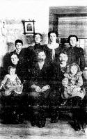 William Searle Abbey family, Village of Dodgeville, Iowa Co., WI, about 1899. Back Row, left to right: Truman Fremont Abbey (born 1886), Mary Maude Abbey (born 1881), Iva Mae Abbey (born 1879), and Emma Jane Abbey (born 1884). Middle Row, left to right: Ida Elmira (Blake) Abbey (born 1858), William Searle Abbey (born 1853), and Erwin William Abbey (born 1876). Front Row, left to right: Glenn Allan Abbey (born 1898), and Edna Blake Abbey (born 1895).