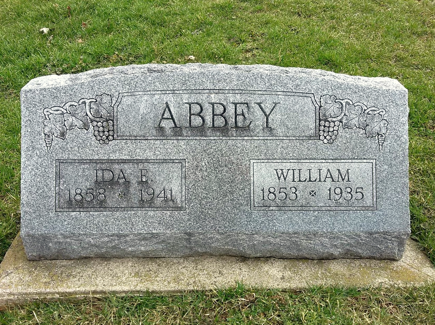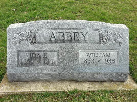 William Searle "Bill" Abbey and Ida Elmira (Blake) Abbey are buried in Section 4, Lot 1/4 7, Block A, Eastside Cemetery, Dodgeville, Iowa Co., WI. Thanks to Find-A-Grave for making this image available. There are two gravesites here for which a $25 perpetual care fee was paid under the name William Abbey. The two gravesites were purchased from Richard W. Parry. A nearby grave contains Ida's brother, Sylvester Fremont Blake, located in Section 1 Lot 34 Block Bdr.