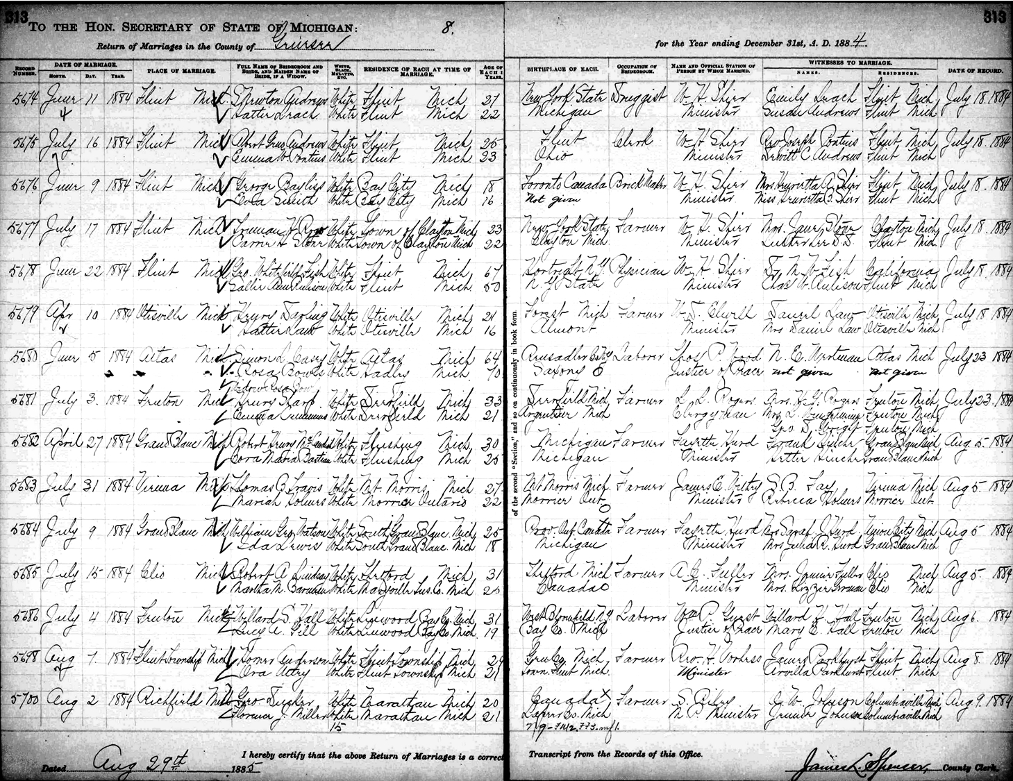 William George Watson and Ida Lewis were married July 9, 1884, in Grand Blanc, Genesee Co., MI.