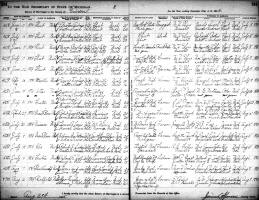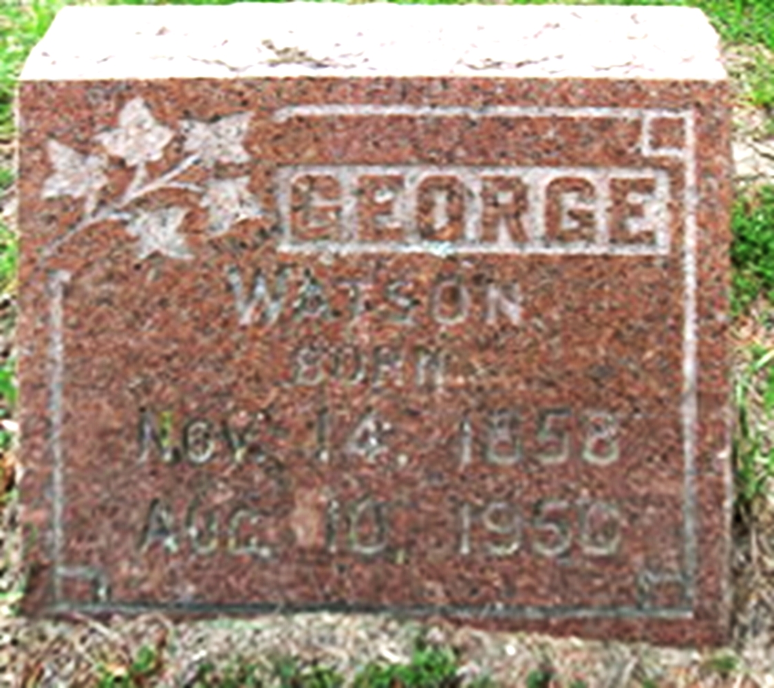 William George Watson died August 10, 1950, in Flint, Genesee Co., MI, at age 91. Buried in Evergreen Cemetery (a/k/a Whigville Cemetery), Grand Blanc, Genesee Co., MI.